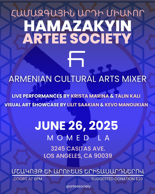 Join our Hamazkayin Theatre Company's new Acting Workshops! Workshops are every Friday starting on June 14, 2024 from 7-9pm at Glendale Youth Center (211 W. Chestnut St, Glendale, CA). No professional experience required! Workshops are FREE and conducted in Armenian. Fore more information, call Shoushig at (714) 403-0875.