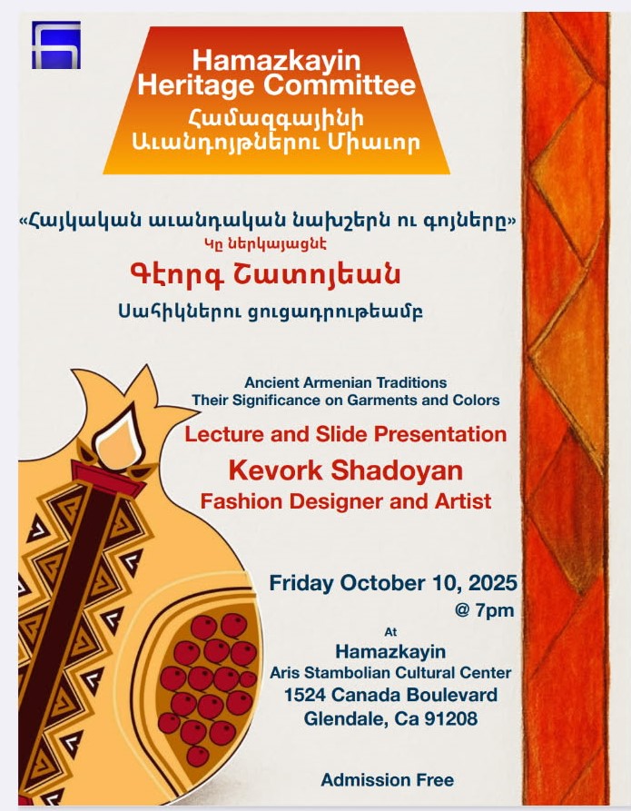Ancient Armenian Traditions October 10, 2025 @ 7:00 pm - 9:00 pm Headquarter Offices for the Hamazkayin Cultural Foundation 1524 Cañada Blvd., Glendale, CA