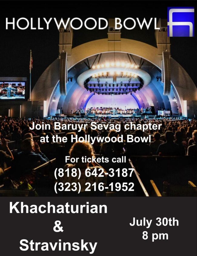 Khachaturian & Stravinsky at the Hollywood Bowl By Hamazayin WRJuly 11, 2024For tickets call: (818) 642-3187 (323) 216-1952