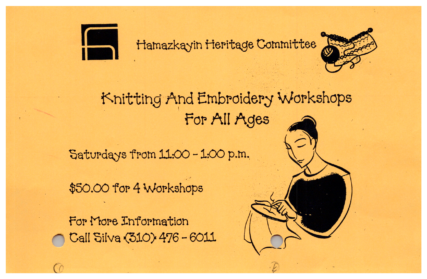 The Hamazkayin Heritage Committee was established in 2002. Its goal is to pass on aspects of Armenian culture to the public, especially to the new generation of students, young people, and new parents, as well as to all interested individuals, through the different fields of Armenian culture.