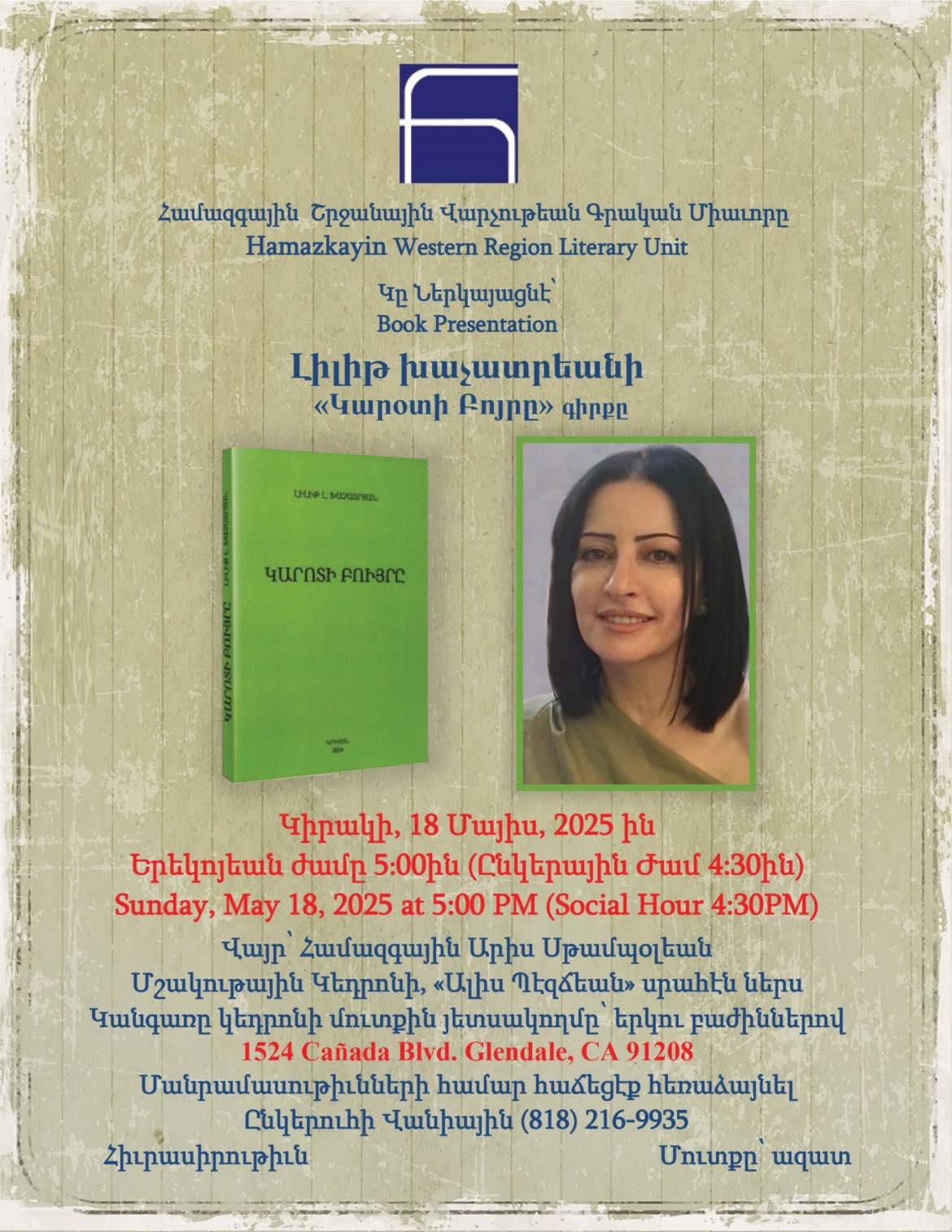 Book Presentation May 18, 2025 @ 4:30 pm - 7:30 pm Headquarter Offices for the Hamazkayin Cultural Foundation 1524 Cañada Blvd., Glendale, CA